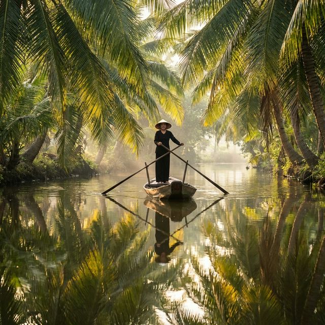 Thư GiãnLướt nhẹ trên những dòng kinh rạch, tận hưởng không khí trong lành dưới bóng mát rặng dừa.